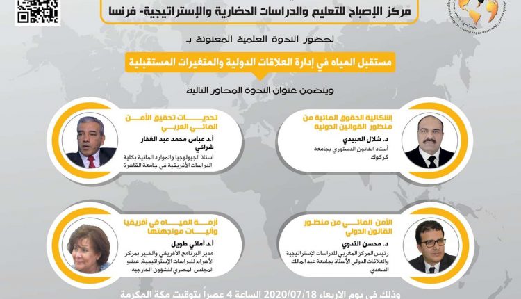 ندوة دولية عن بعد بفرنسا : مداخلة د.محسن الندوي حول موضوع الأمن المائي من منظورالقانون الدولي
