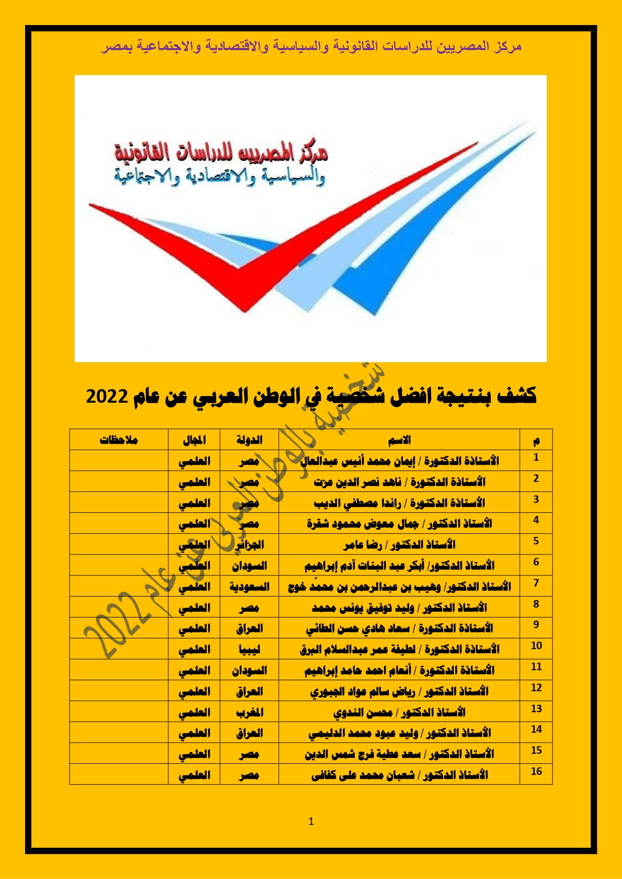 وذلك من بعد فحص ملفه العلمي الي اللجنة العلمية والتي اختارته من افضل مائة شخصية في مجال البحث العلمي لما قدمه من أعمال بحثية وسيرة علمية مدعمة عن عام 2022 .