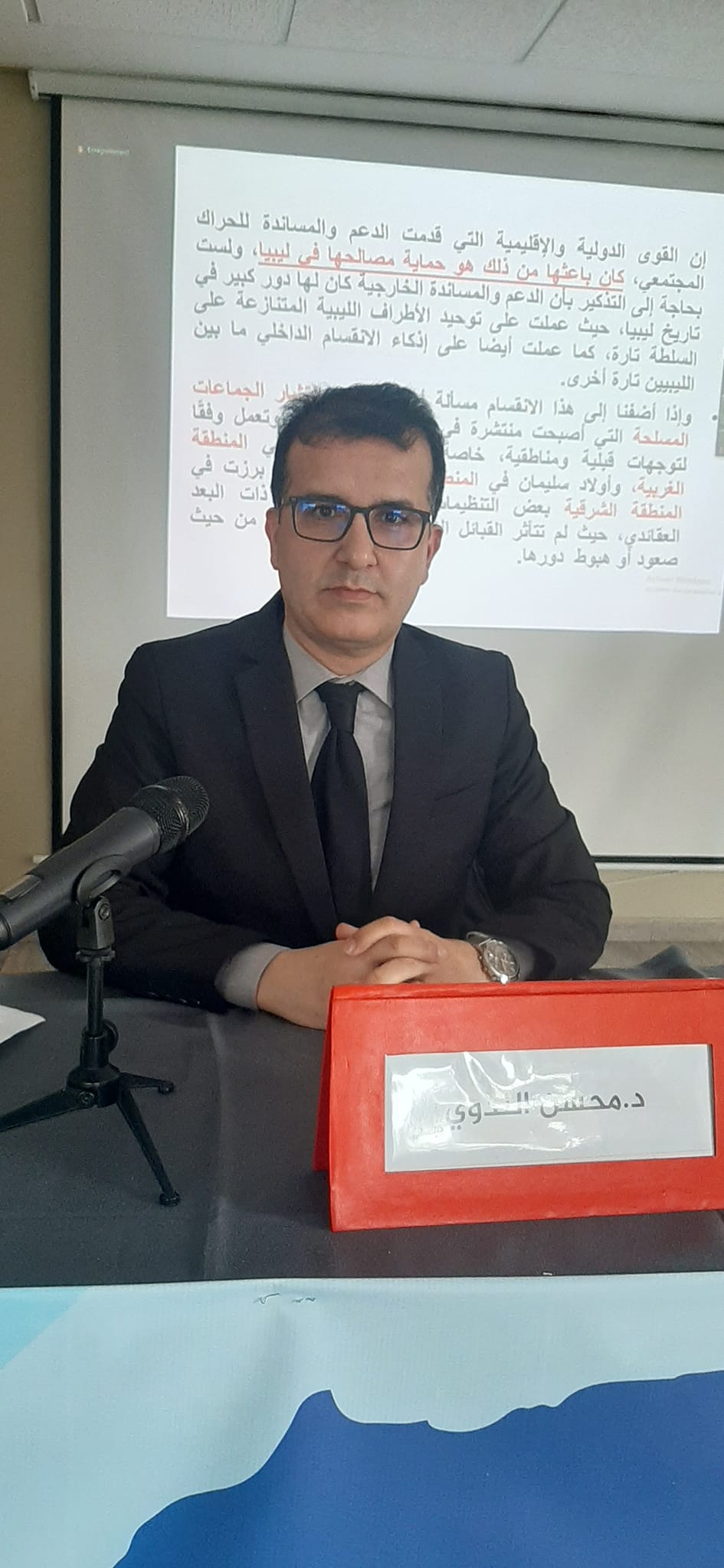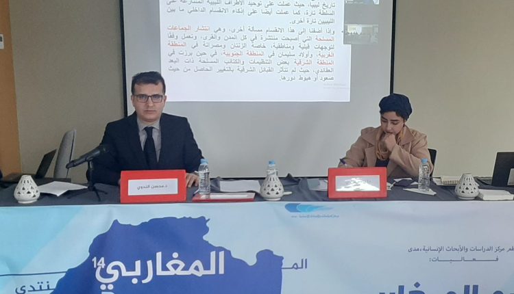 حيث كانت مداخلة د.محسن الندوي حول موضوع : الابعاد الاستراتيجية للتنافس الدولي في منطقة المغرب العربي ، وقسمها الى اربعة محاور :